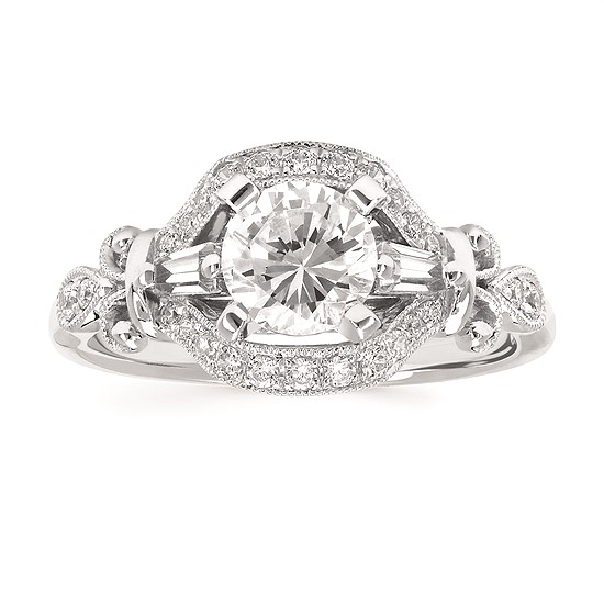 Engagement Ring Forever ElegantĀ® 1/3 Ctw. Diamond Semi Mount shown with 1 Ct. Round Center Diamond in 14K Gold