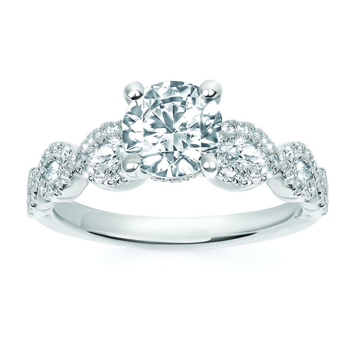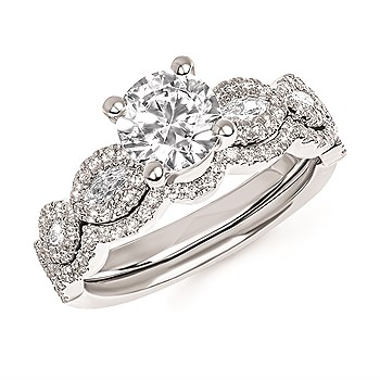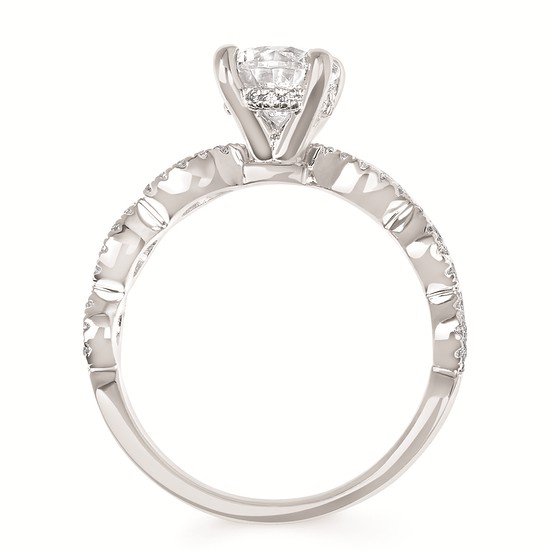 Engagement Ring Classic Bridal: 1/2 Ctw. Diamond Semi Mount shown with 1 Ct. Round Center Diamond in 14K Gold